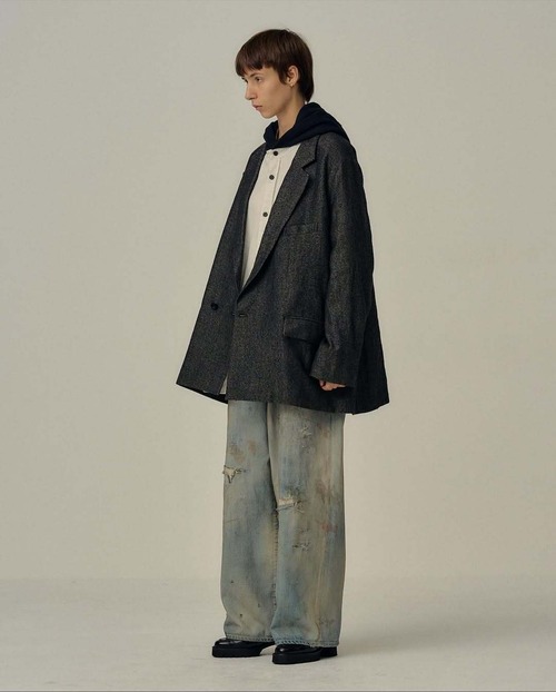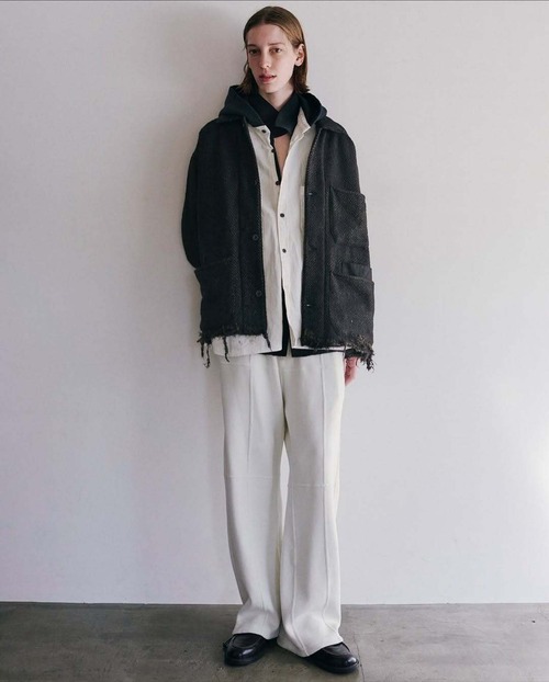 着古してコシが抜けたような質感にすべくオンスが軽めのデニムを選び、染めと加工によりムードを引き出しました。