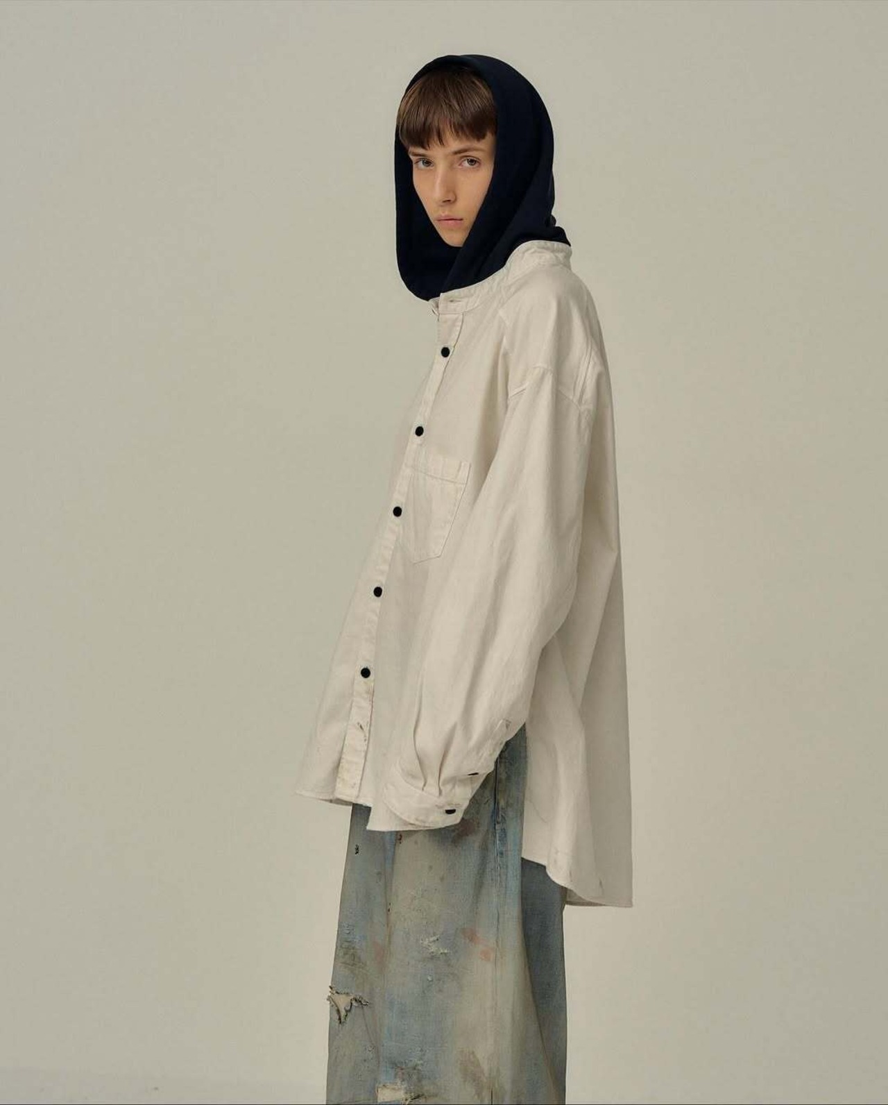【25AW】ANCELLM DENIM HOODIE SHIRT (WHITE) ANC-SH67-A