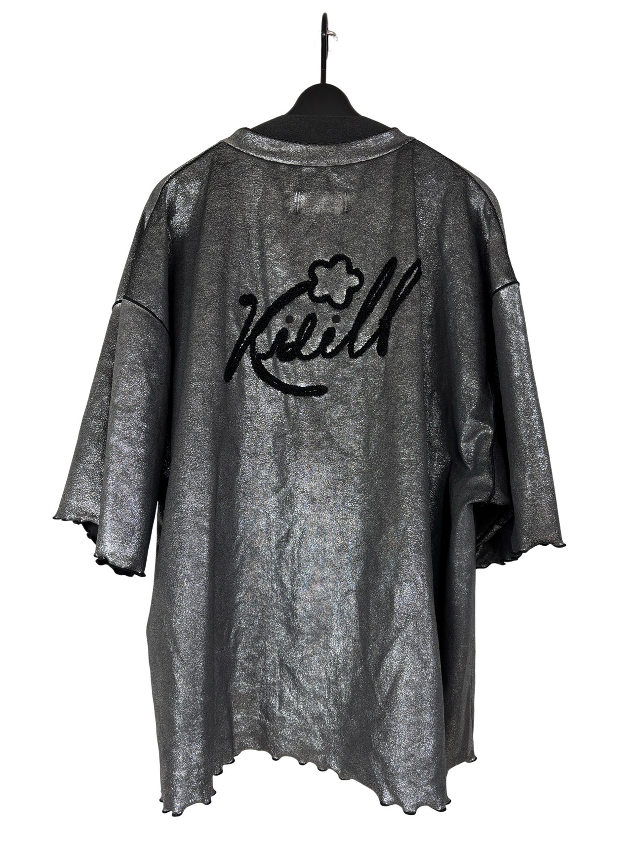 【26SS】KIDILL FLOWER CORD EMBROIDERY VELOUR TEE BIOSTONE WASHED(BLACK × SILVER FOIL)KL1081