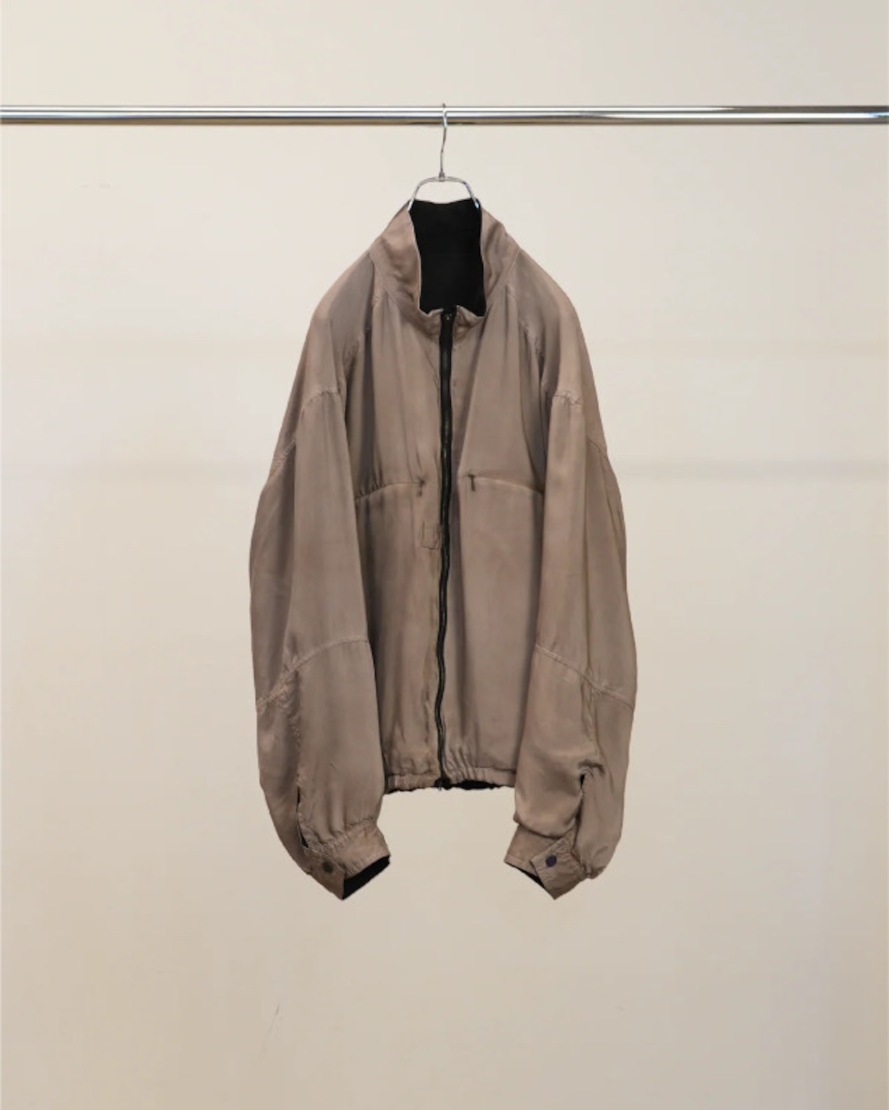 オリジナルファブリックのキュプラで製作した、リバーシブルブルゾン。