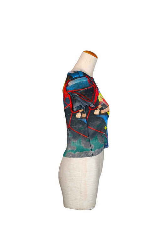 【26SS】kotohayokozawa SHEER GRAPHIC TINY TOP (BLUE MESS) TDX6S-GR-TNY