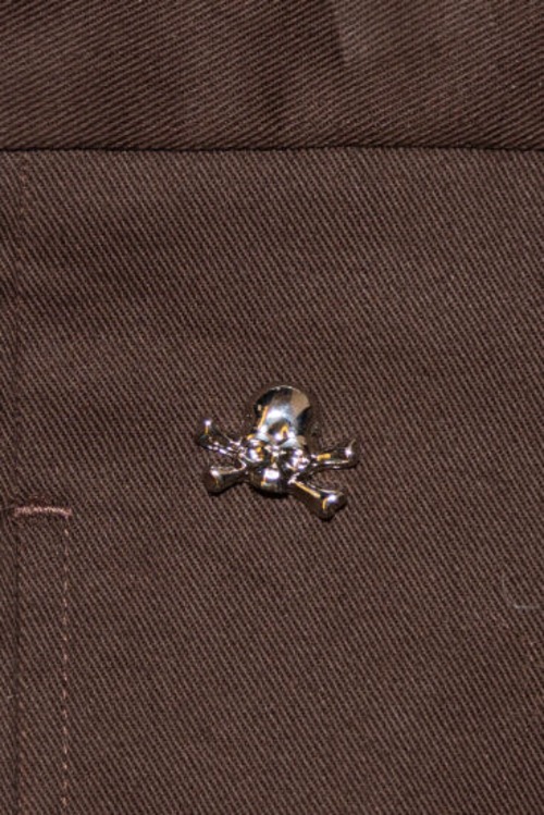 スカルのスタッズがポケット脇に打ち込まれたコットンツイルのパンツです。