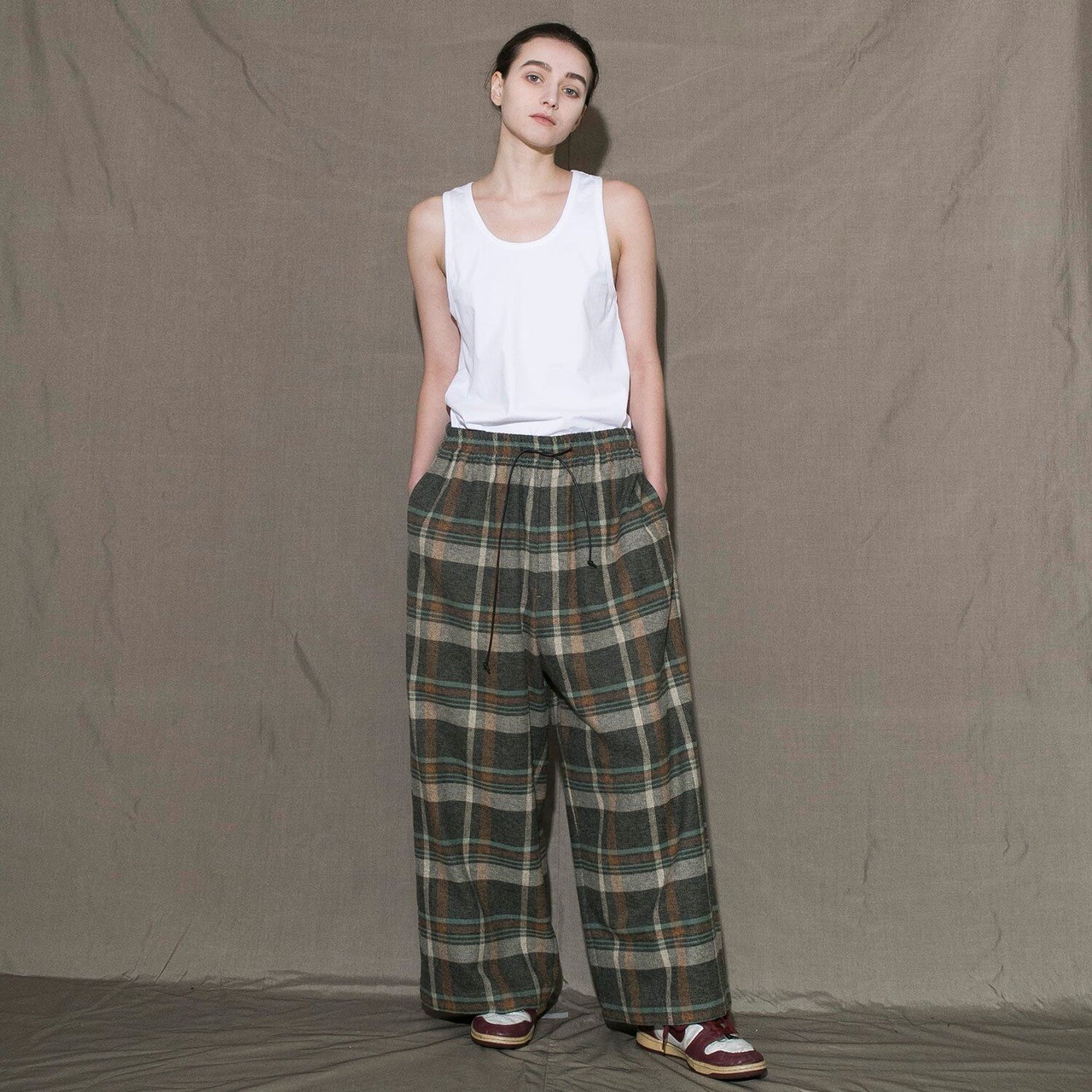 my beautiful landlet HEATHER MIX CHECKED COTTON WIDE EASY PANTS(GREEN) WM01-PT222012