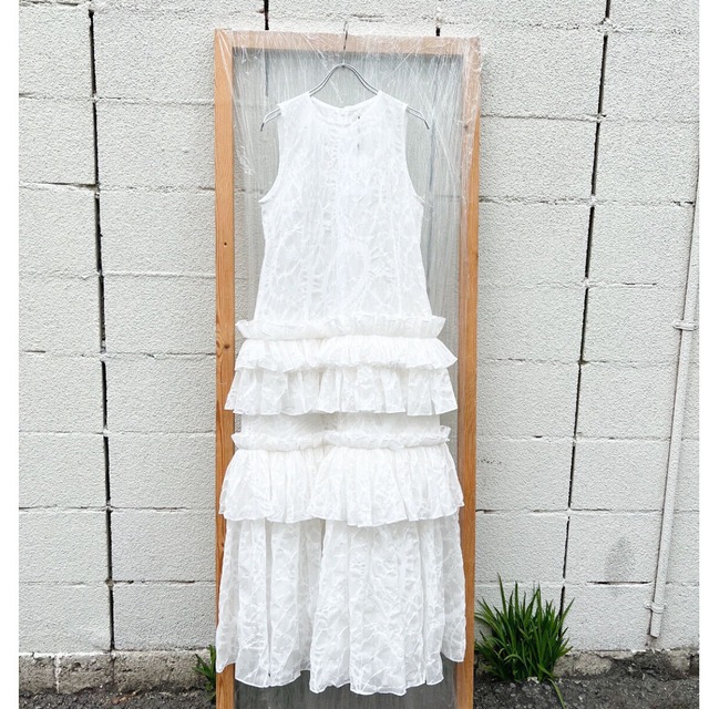 BELPER GATHERED RIPPLE DRESS (WHITE) 1611-0222R