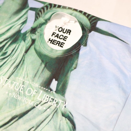 衿部分に顔をハメ、袖山部分を手で引っ張り上げると誰もが知っている歴史的建造物になりきる事が出来