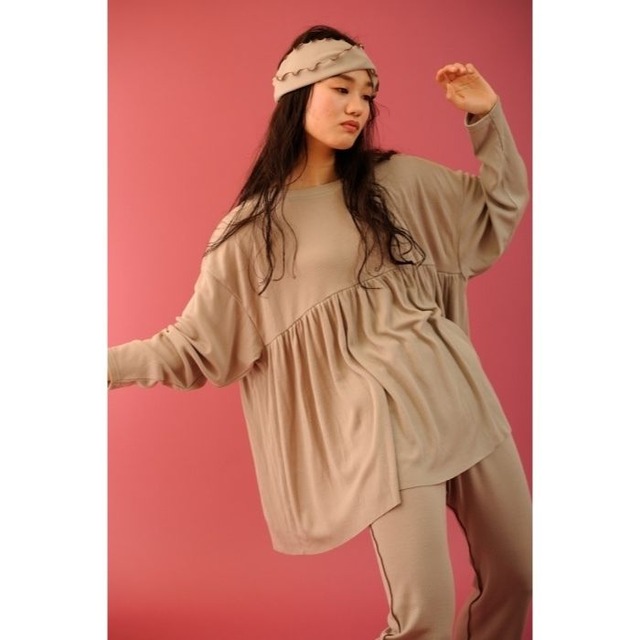 滑らかでやわらかい上質なウール100%の素材を贅沢に使用し,ミニスヌードにもなるヘアバンドとボリューム感のあるトップス,パンツの3点セットシリーズ。