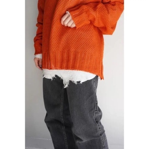 ANCELLM DAMAGE WAFFLE CREW LS T-SHIRT (white) ANC-CT37