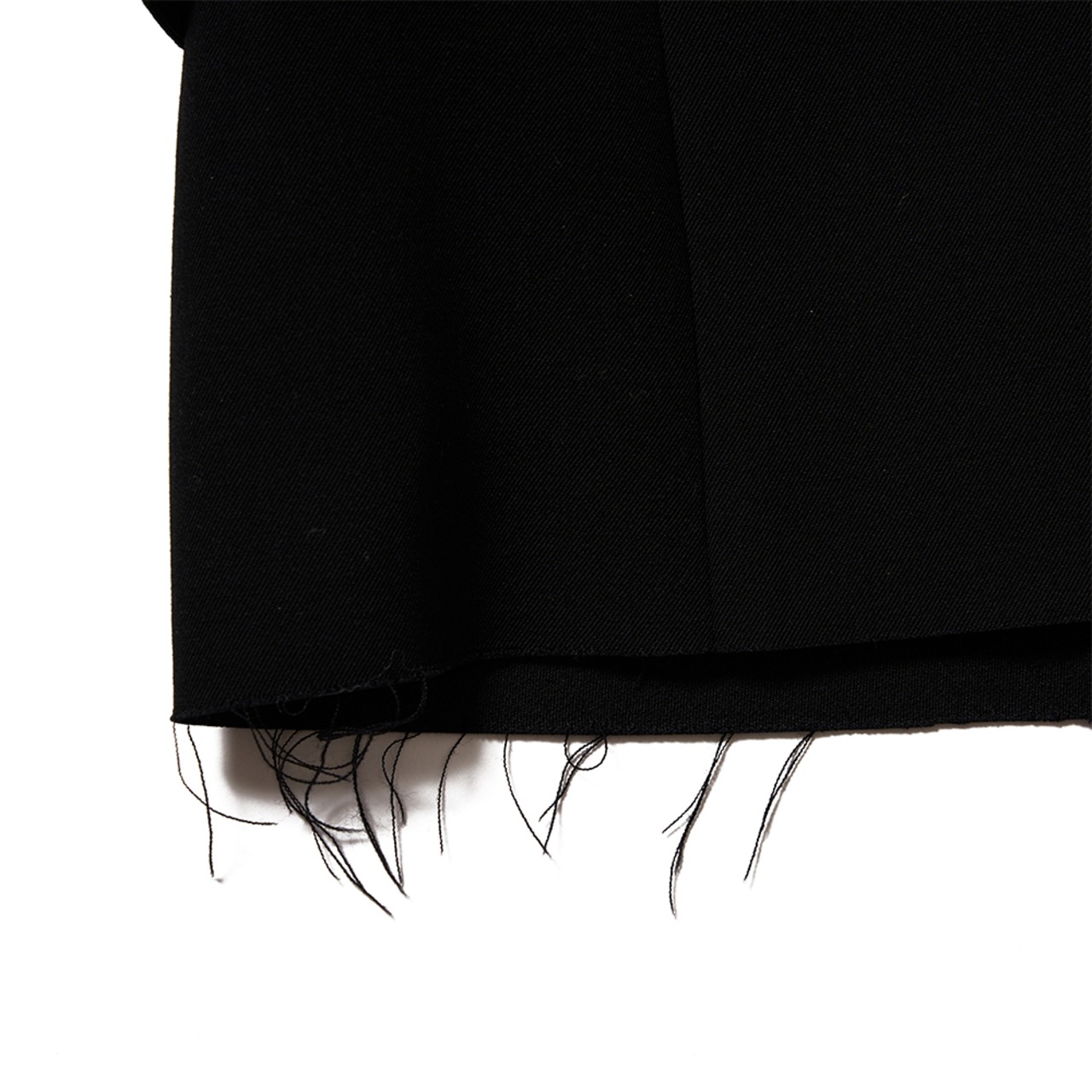 テーラーメイドの伝統的な仕立てとオーバーサイズのテーラードジャケットが、まるで引きちぎられたかのような独特の裾で結びついています。今、あなたの前にあるのは、未来と過去が交差する場面。新しい思い出の一部にしてみませんか?